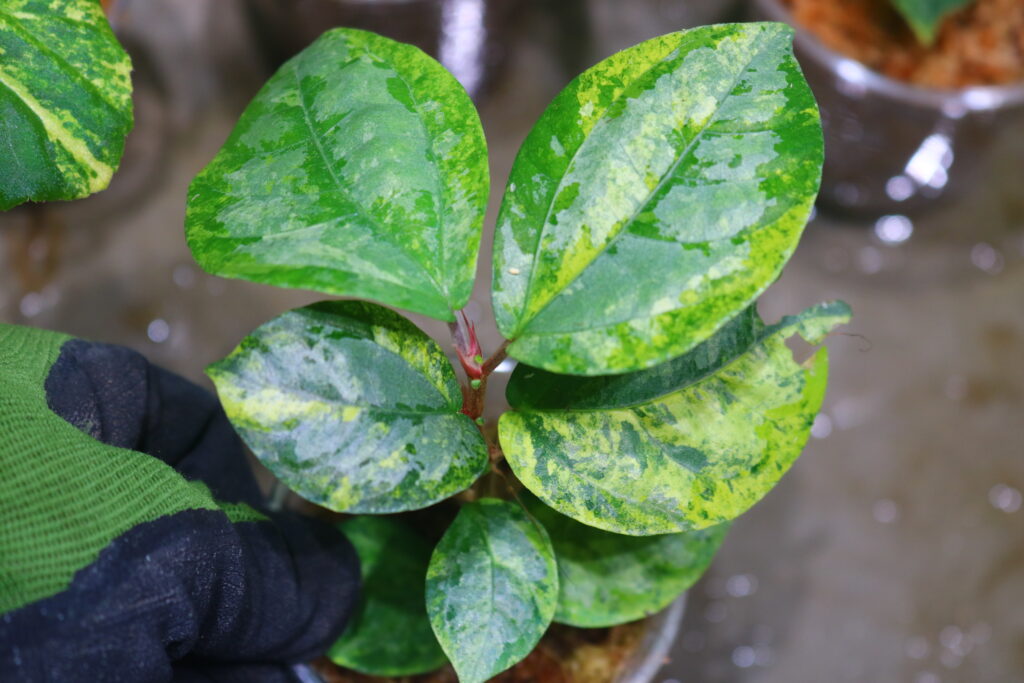シルバーの地模様と鮮やかな黄斑が絶妙に融合した、エラトステマの希少な斑入り個体です!