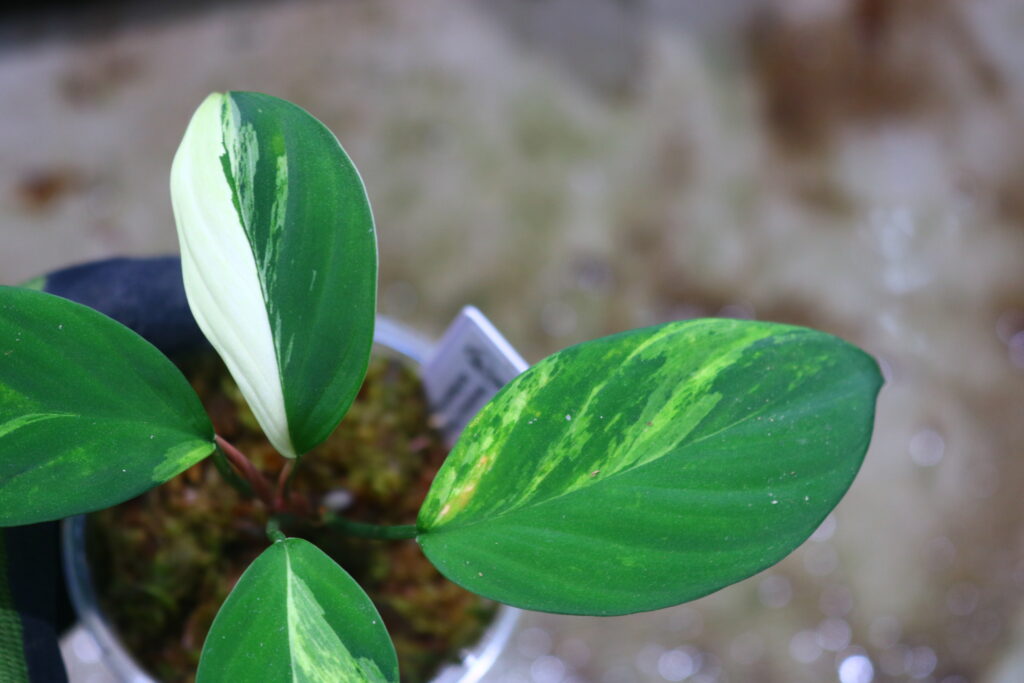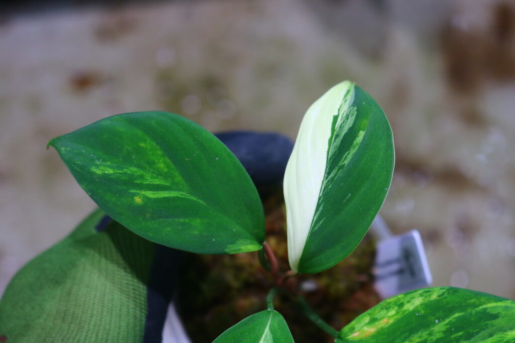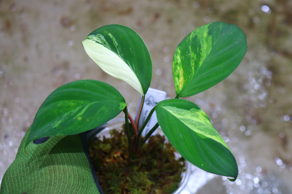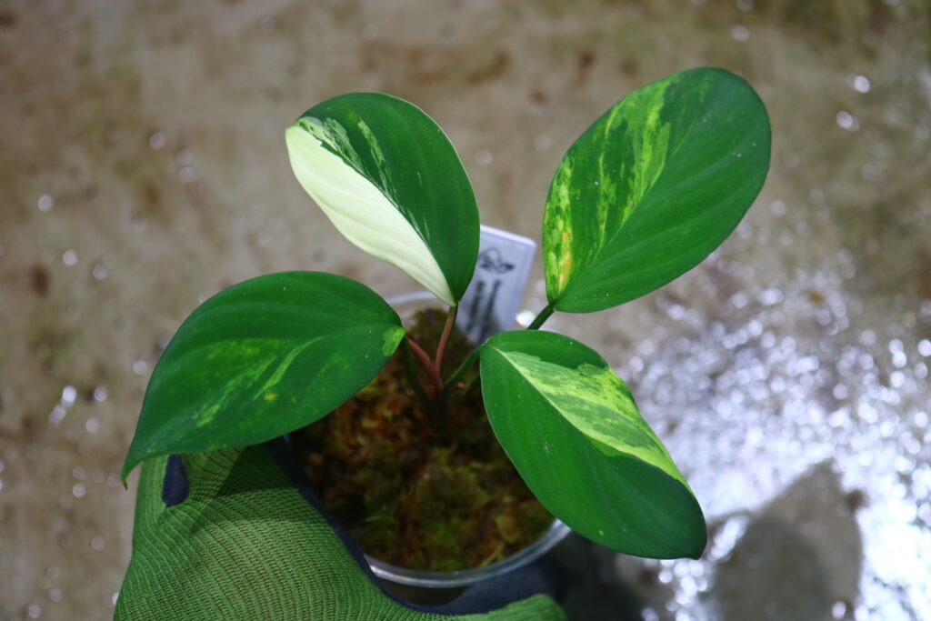 令和5年にホマロメナ’Chamaecladon Clade’ variegated の名前で 輸入したインドネシアのSumatera Utara(スマトラ島北部)産の珍しい斑入りホマです。