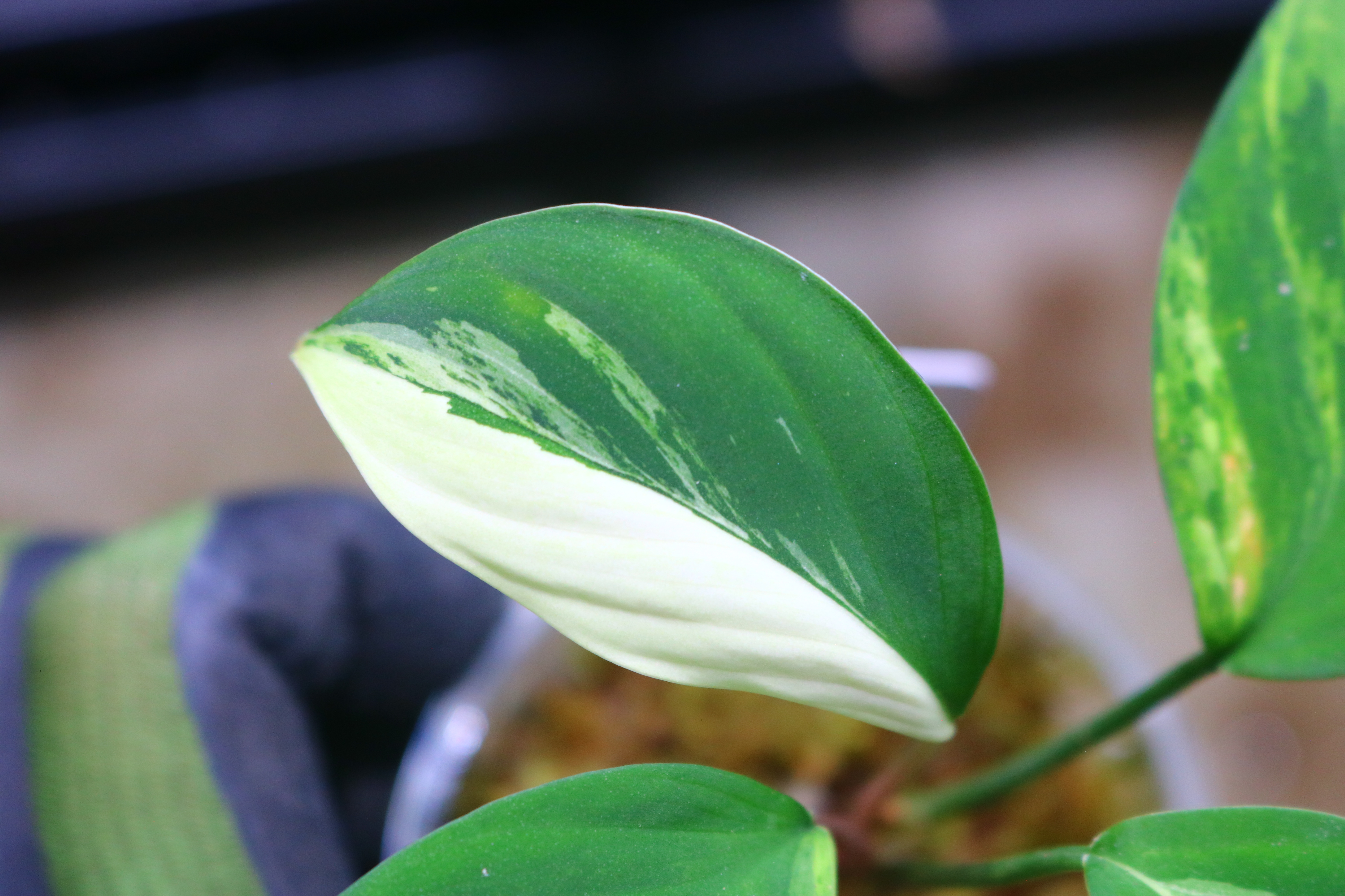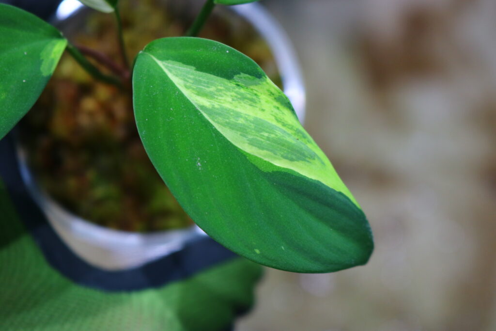 ベルベットの葉に鮮やかな黄緑色や白、クリーム色の様な斑が入っており、深い緑とのコントラストがすごくキレイで存在感がすごいです!