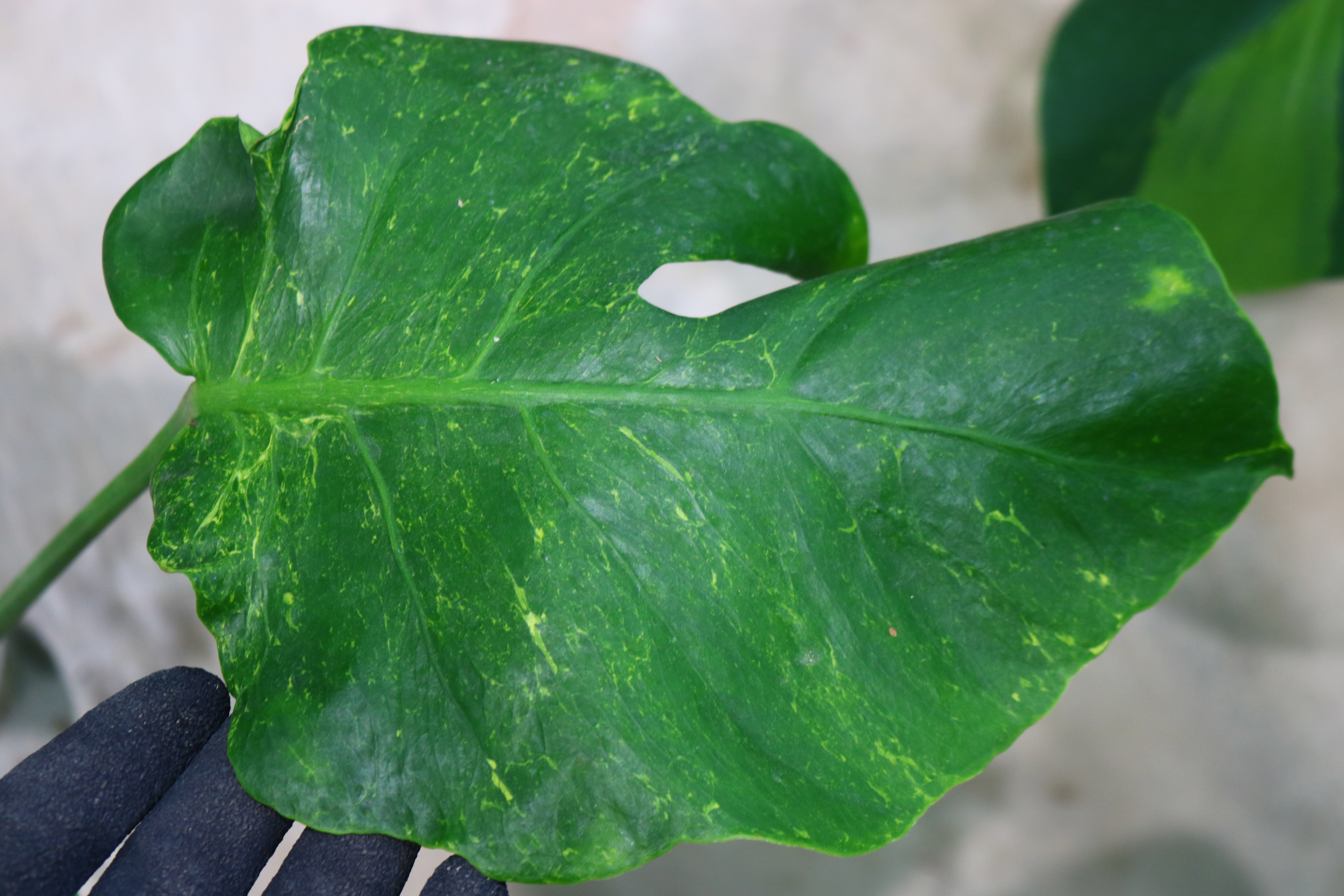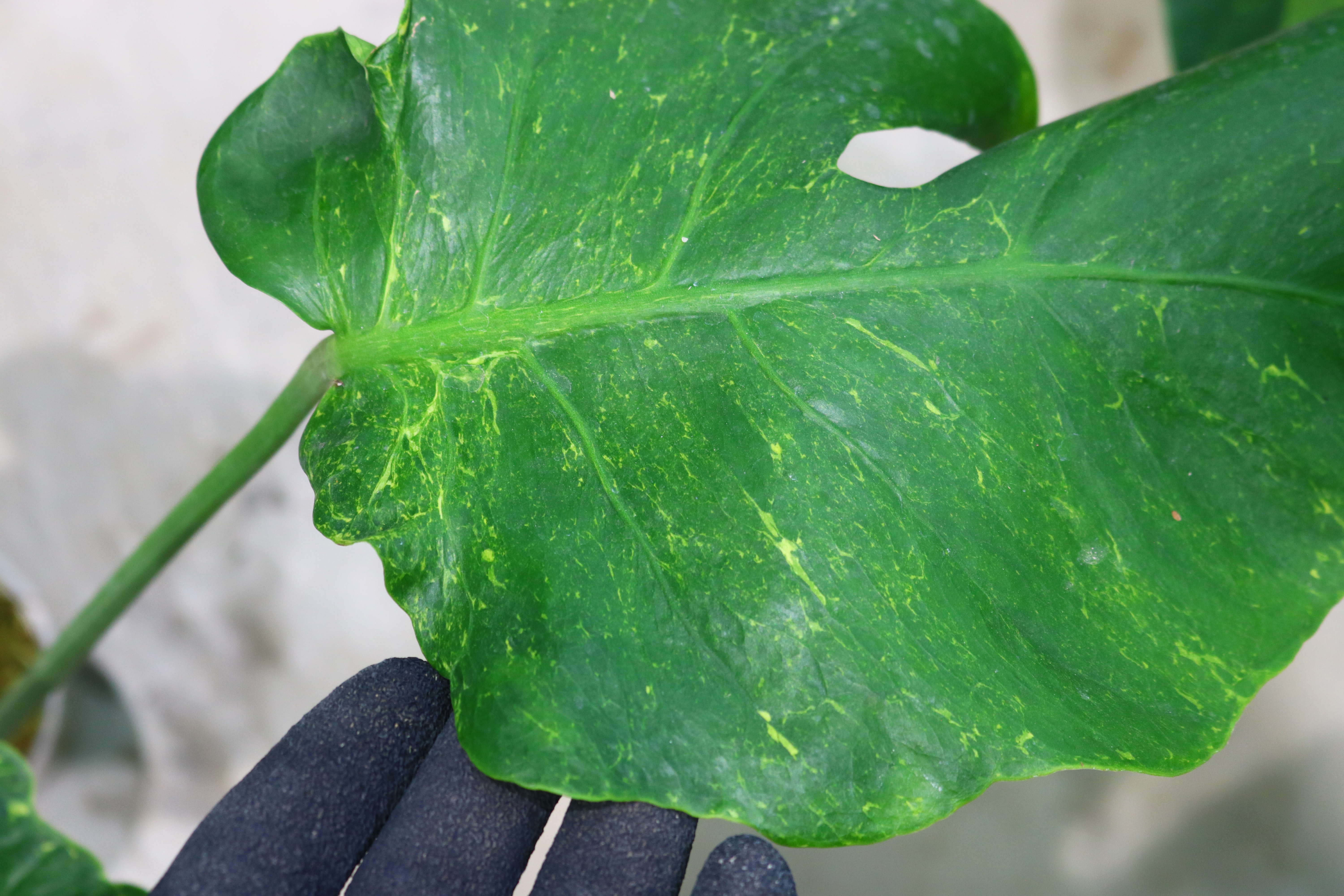 (オーシャンサンダーボルト)や (ライトニング)」という名前が付けられたモンステラに、近い表現を見せる株です。