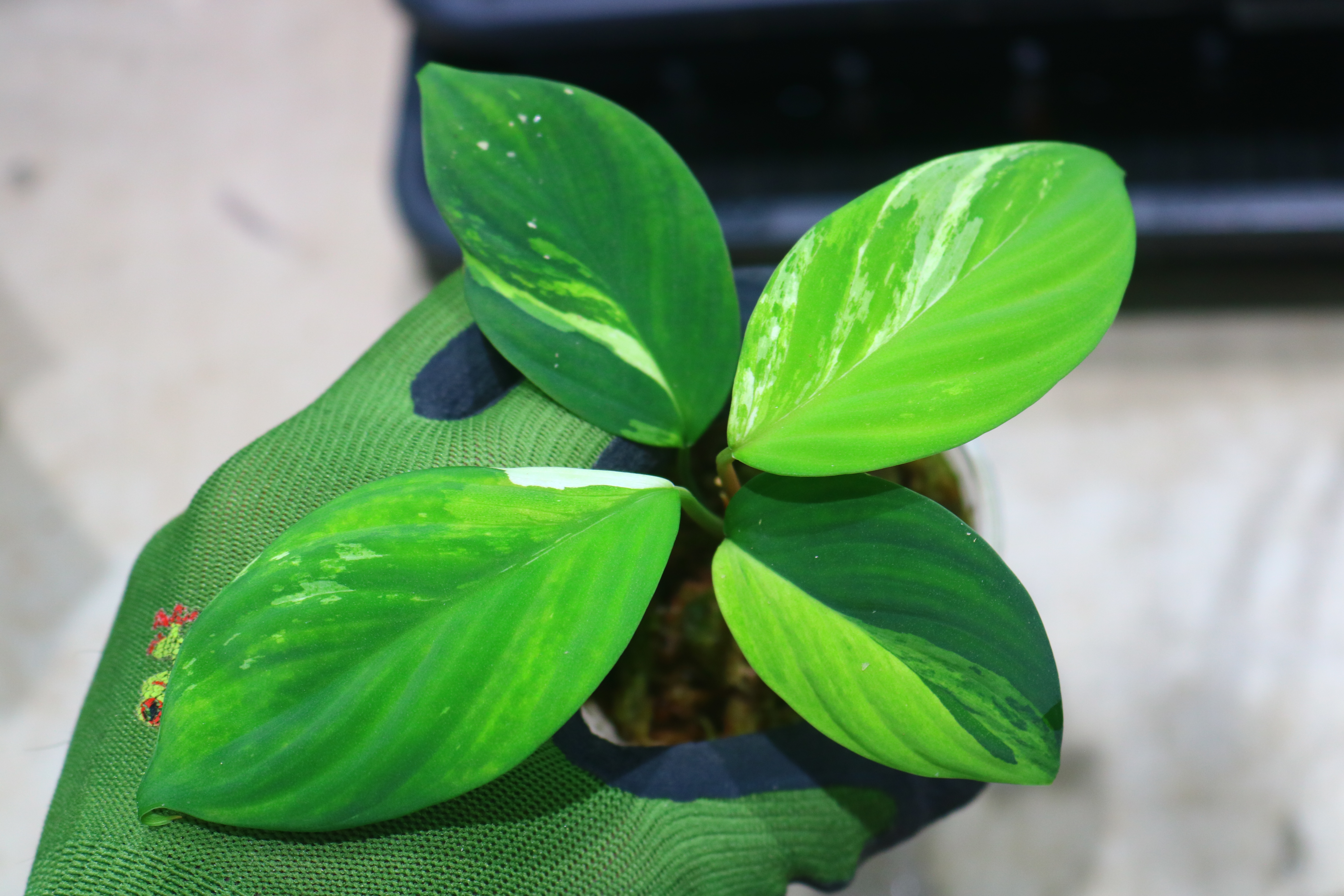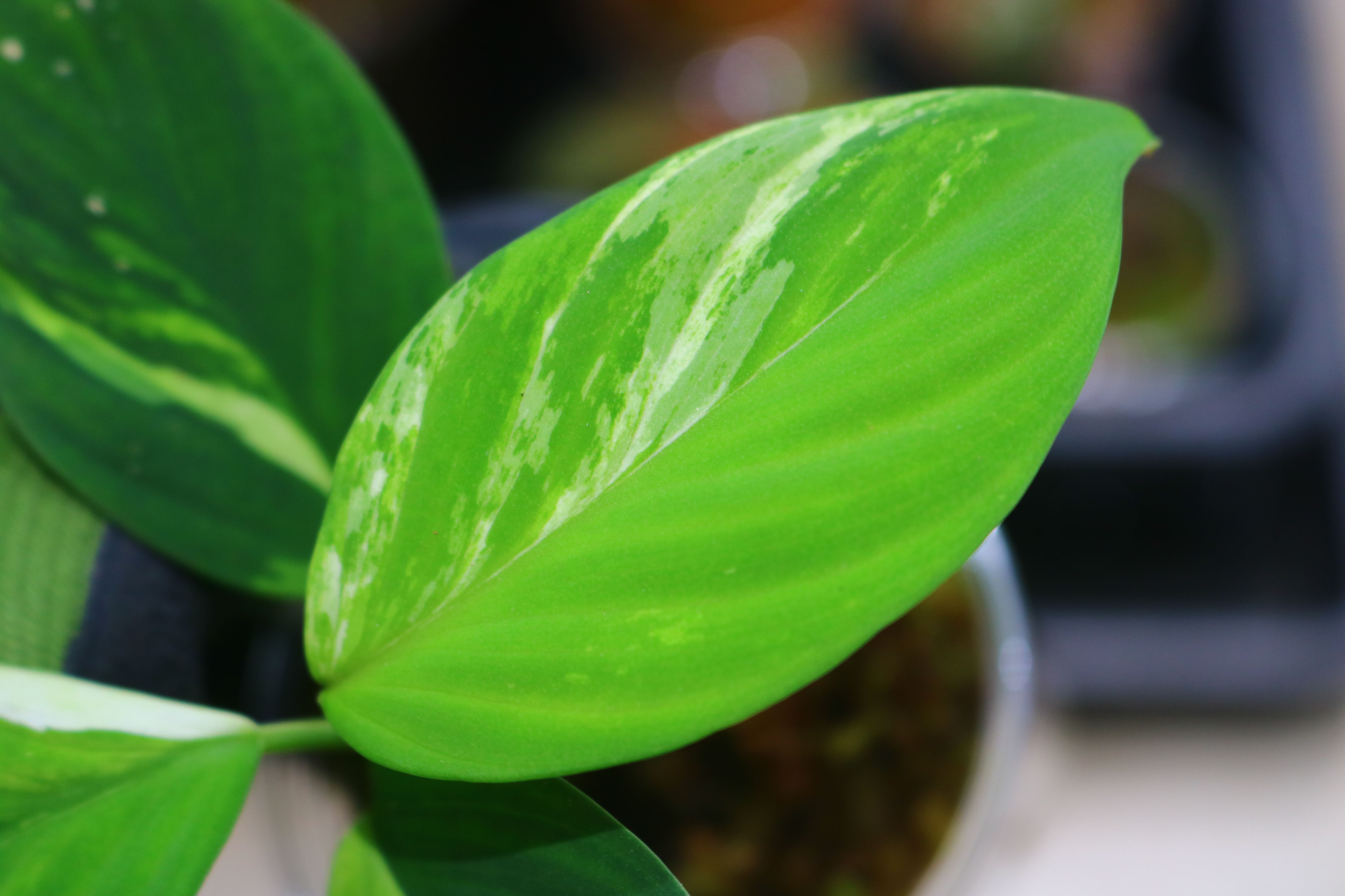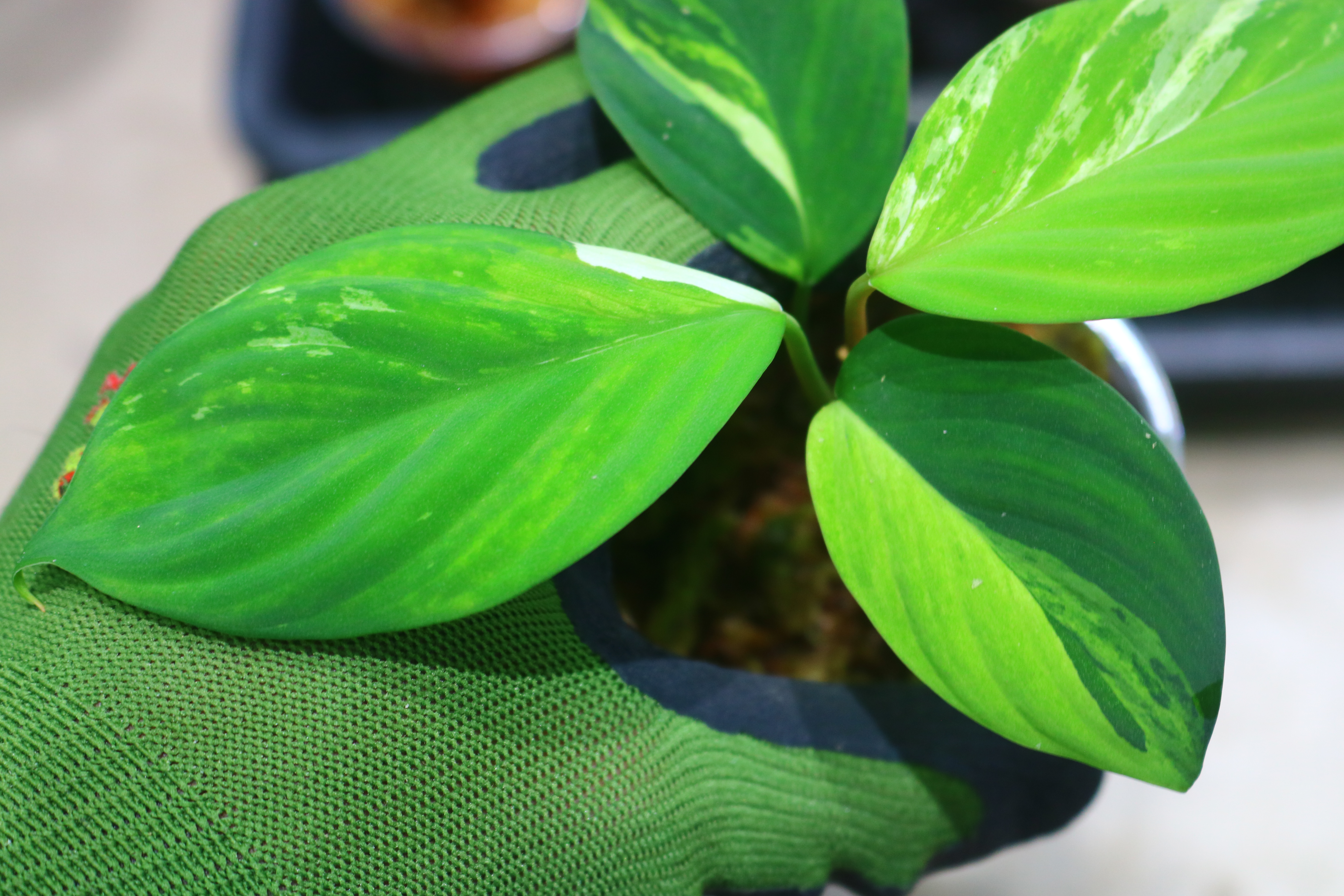令和5年にホマロメナ’Chamaecladon Clade’ variegated の名前で 輸入したインドネシアのSumatera Utara(スマトラ島北部)産の珍しい斑入りホマです。