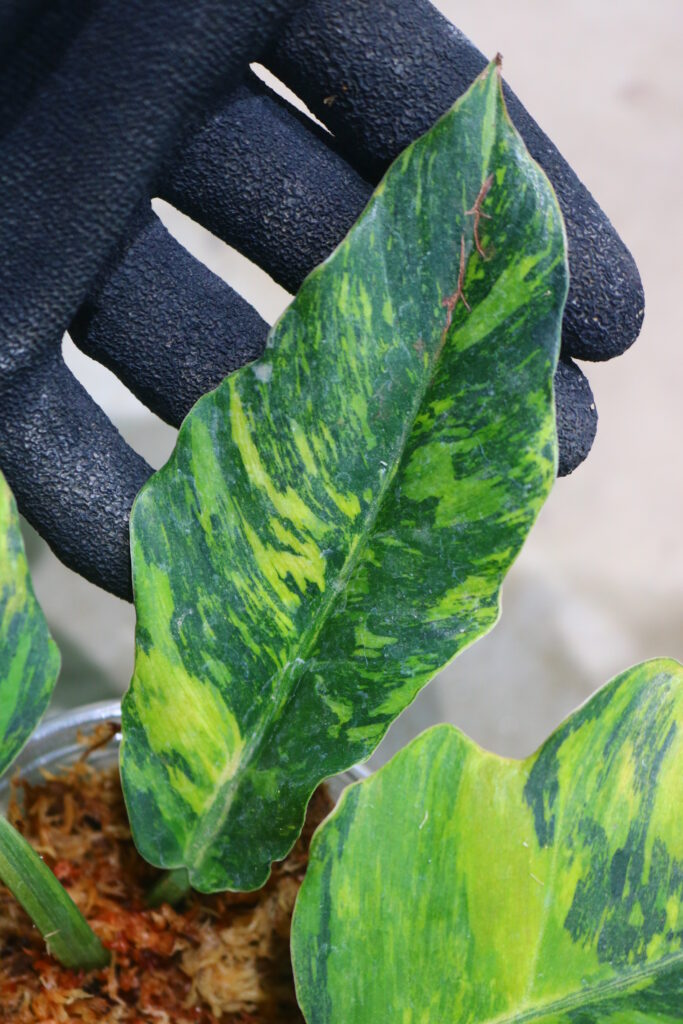 定番のキャラメルマーブルと比べると、葉の色味や斑の出方にやや違いが見られ、よりトラ柄のようなコントラストや色の濃淡が強めに出る印象です。