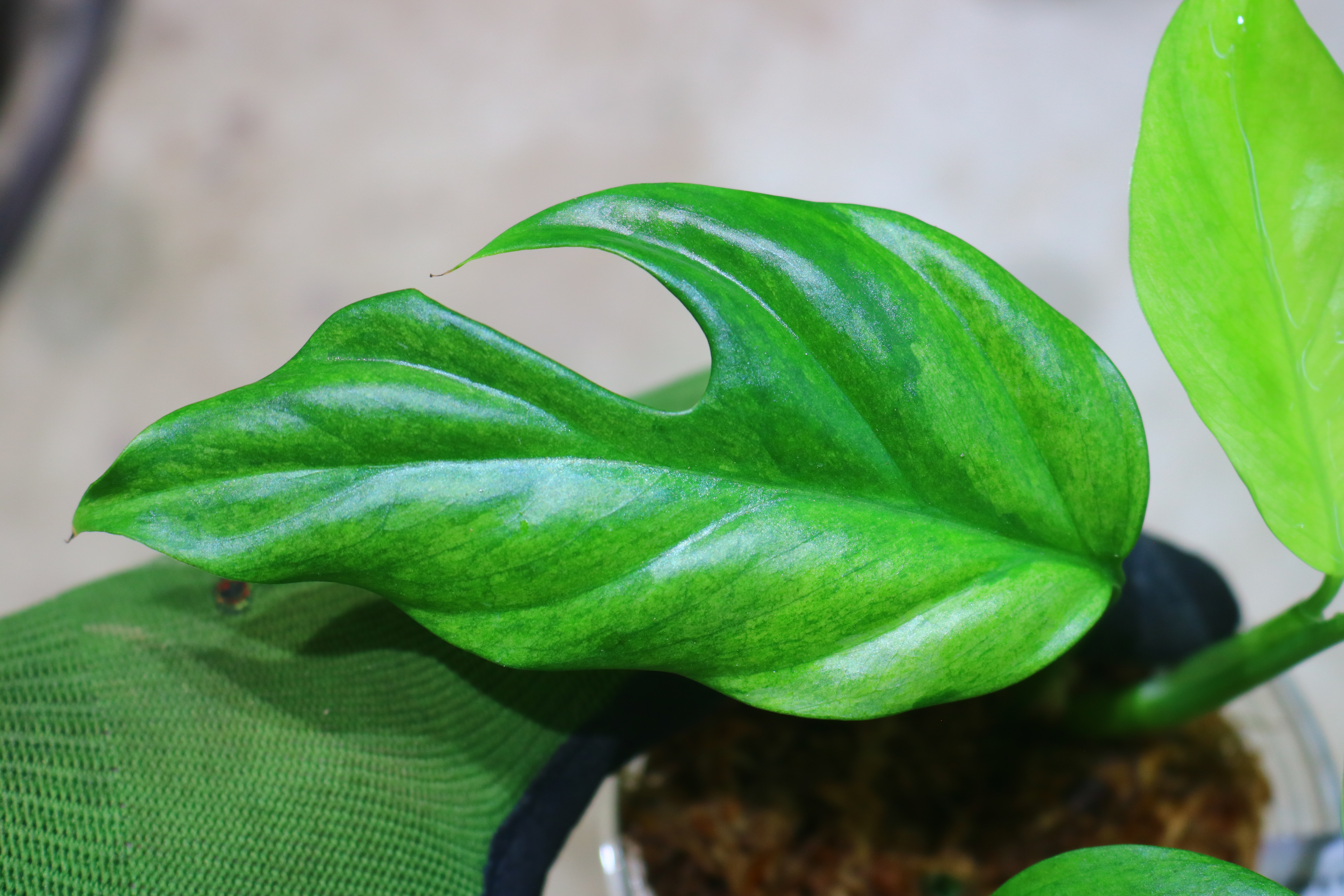自分が昔から大好きで育ててきたラフィドフォラ・テトラスペルマ(ヒメモンステラ)に似た雰囲気を持ちながらも、少し細身でワイルドな存在感のある葉姿がとても魅力的なんです。