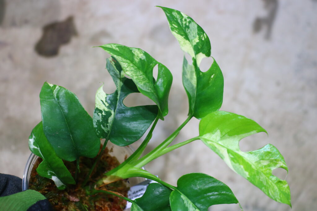 令和6年にタイから仕入れた、ミント斑入りのホワイトモンスター珍しいナローリーフタイプです。