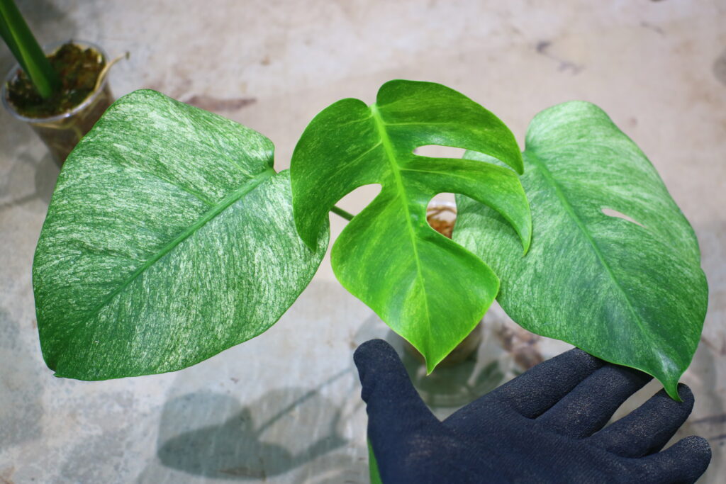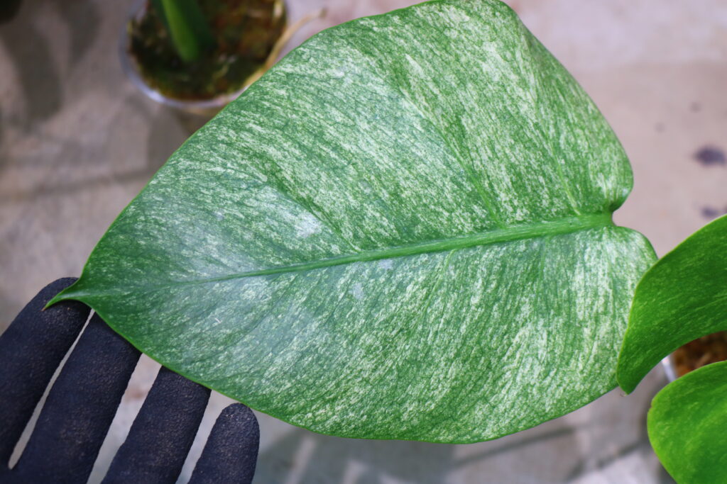通常のデリシオーサよりも葉が肉厚で、穴が少なく、切れ長な形状
